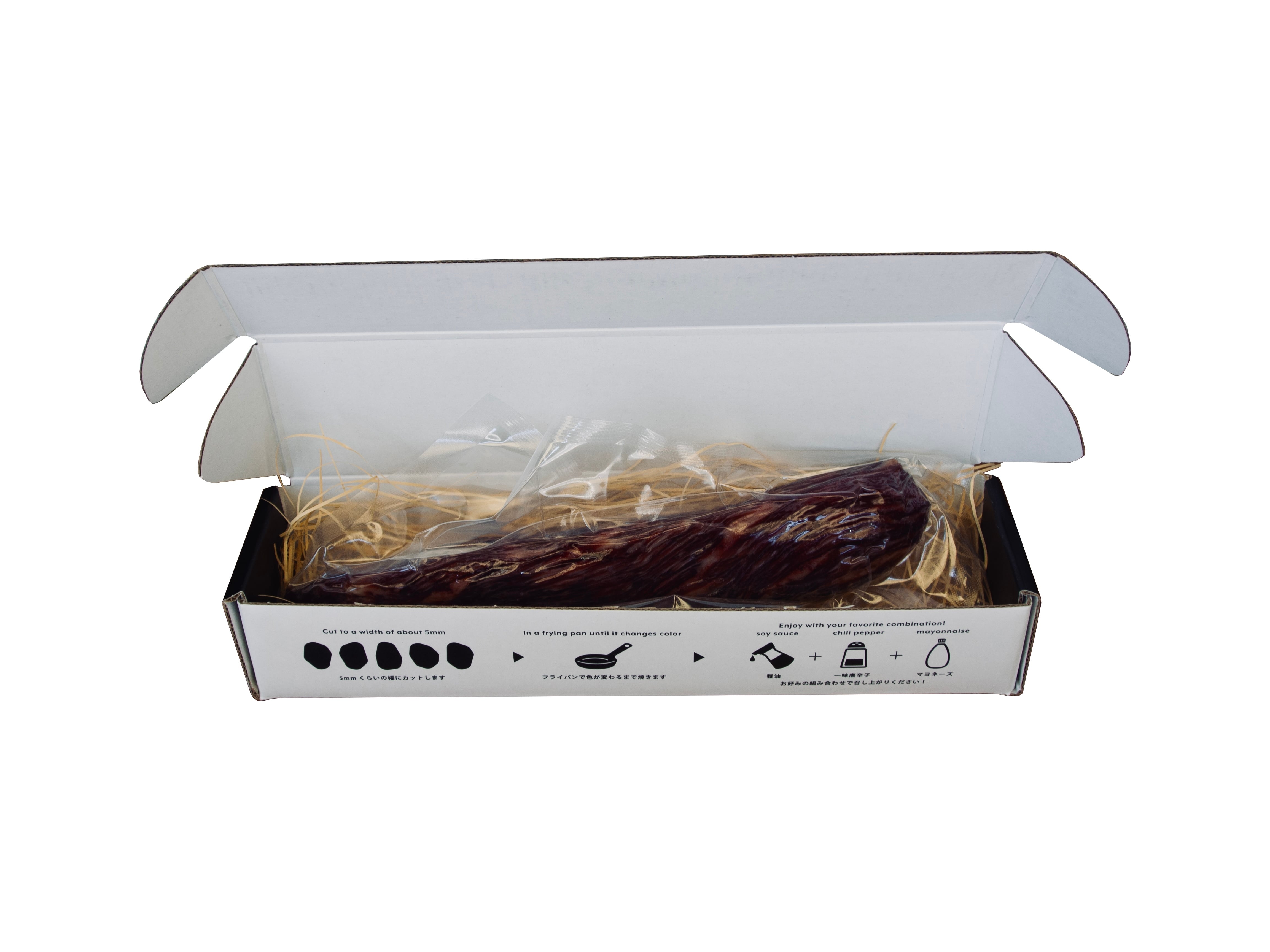 干し肉1本(130g)が真空状態で、ギフトや手土産にピッタリなパッケージ入り。