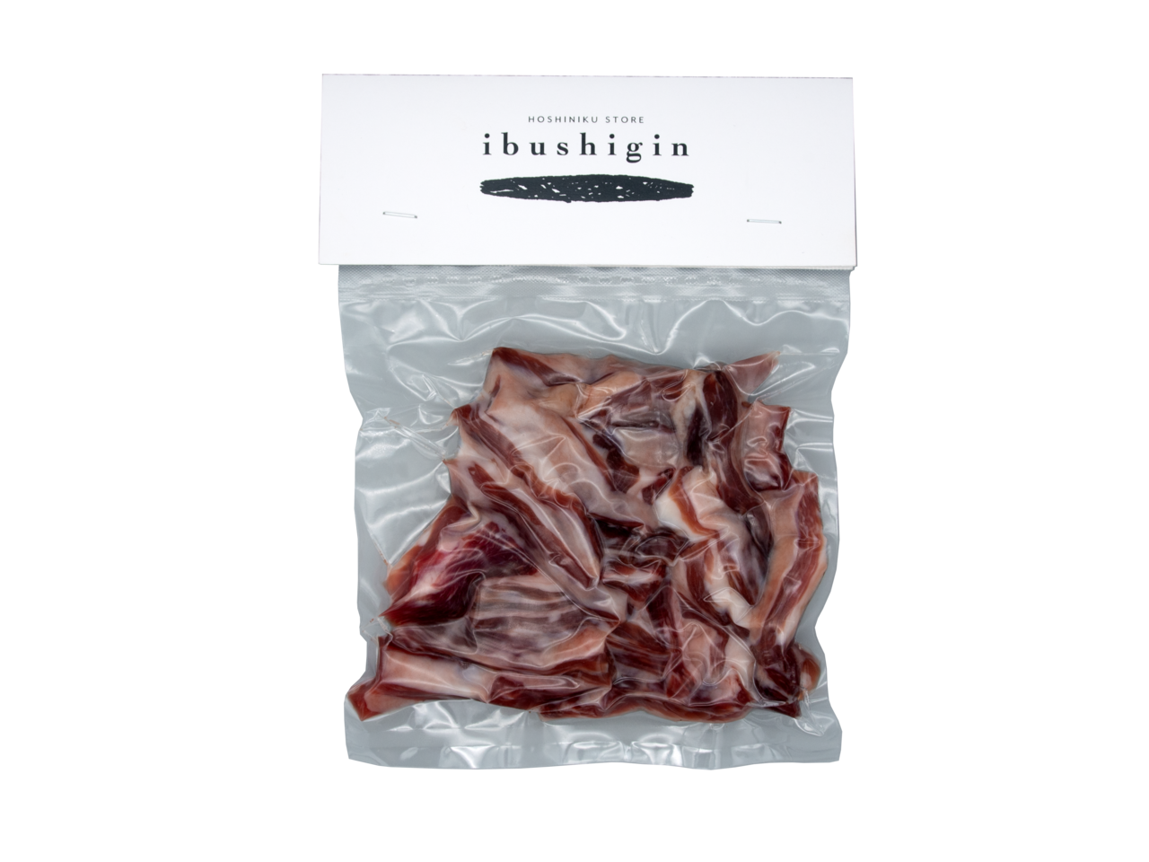干し肉が食べやすいホソギリ狀(約100g)にカットされ、真空状態になっています。